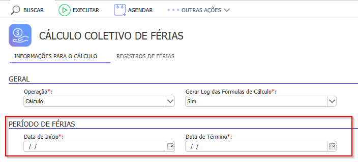 - O Cálculo de Férias Coletivas só será executado para colaboradores que possuírem Programações de Férias cadastradas.