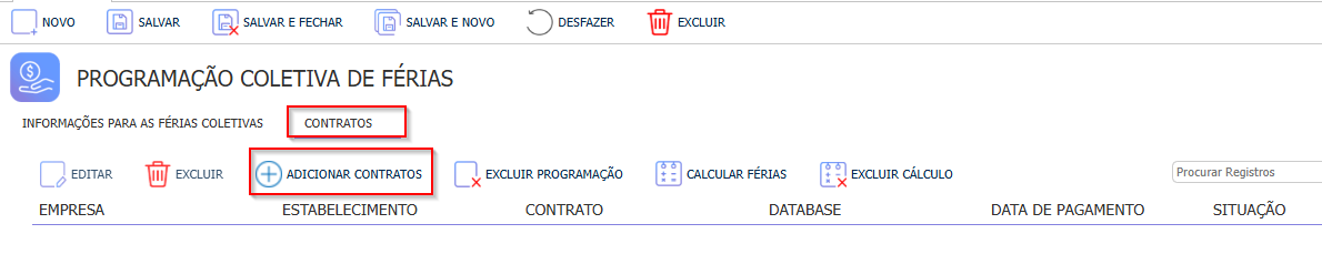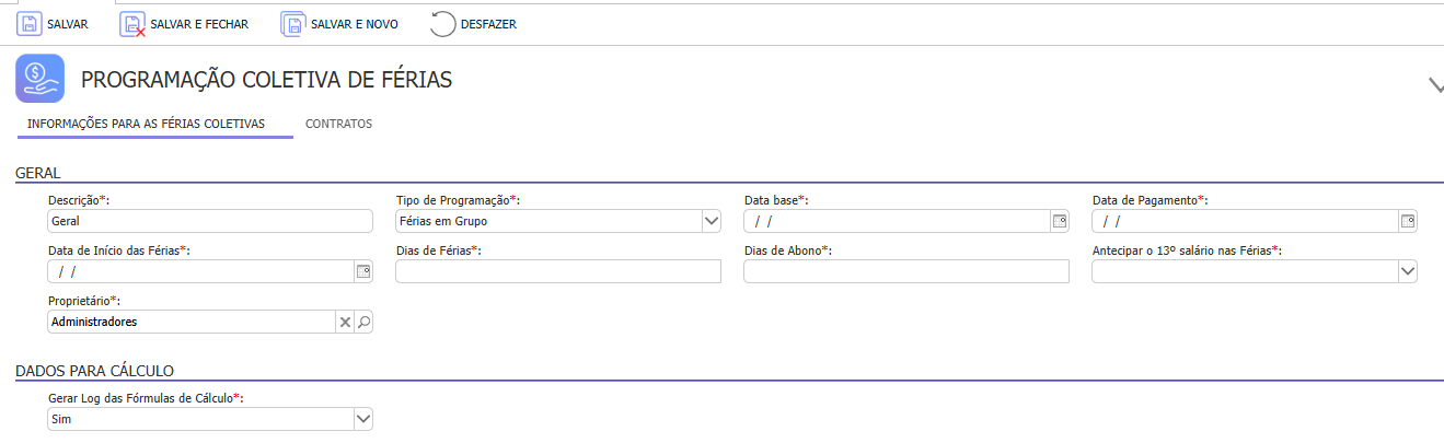 2. Cadastre a Programação de Férias diretamente no Registro de Férias, sem que seja necessário o Cálculo.