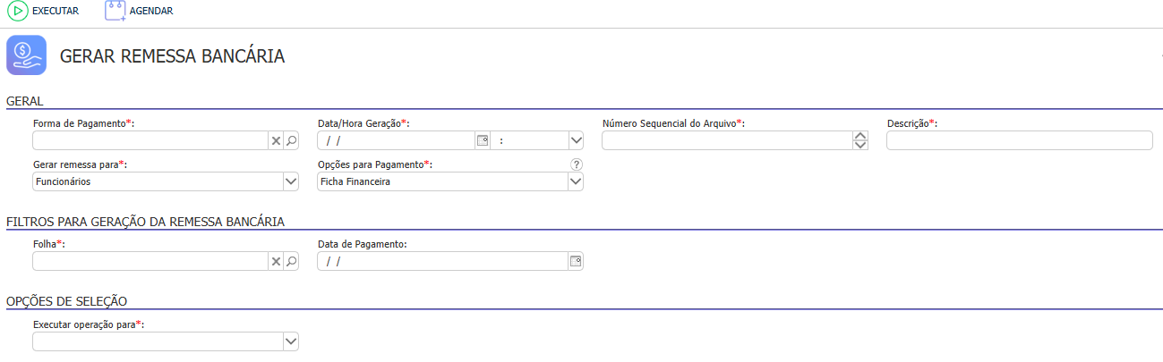 👉️ A Remessa Bancária gera arquivos de integração bancária, contendo os valores líquidos para pagamento em crédito em conta dos empregados ou pensionistas.