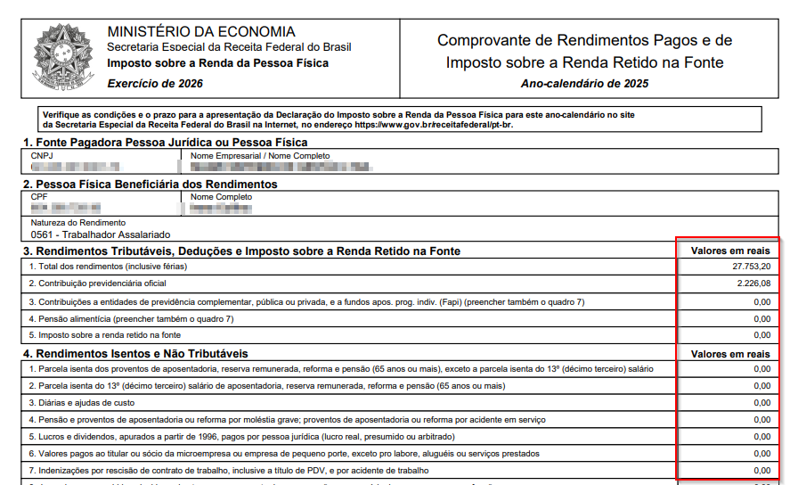 Os valores apresentados na carta de rendimentos correspondem aos mesmos transmitidos nos eventos S-1210 e S-2501
