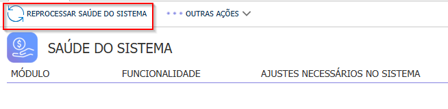2. Clique em REPROCESSAR SAÚDE DO SISTEMA.