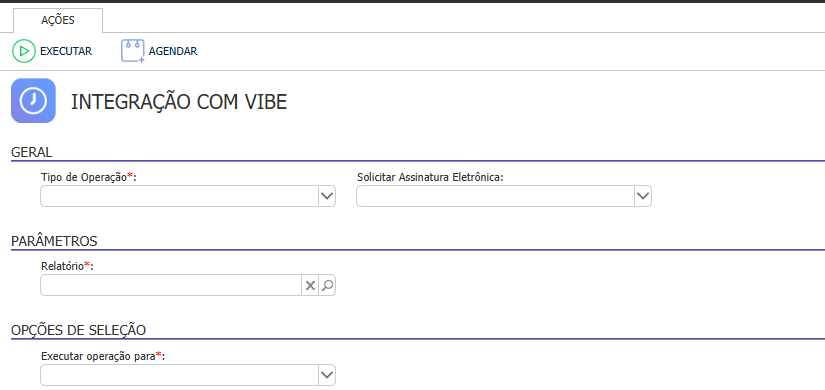5. Para concluir, clique no botão EXECUTAR, que iniciará o processo de integração com o Vibe.