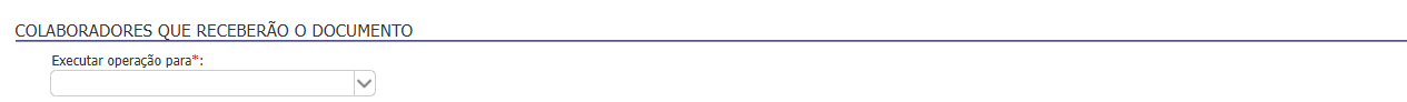 4. Na seção COLABORADORES QUE RECEBERÃO O DOCUMENTO, no campo Executar operação para, são exibidos filtros que permitem o envio individual ou coletivo: