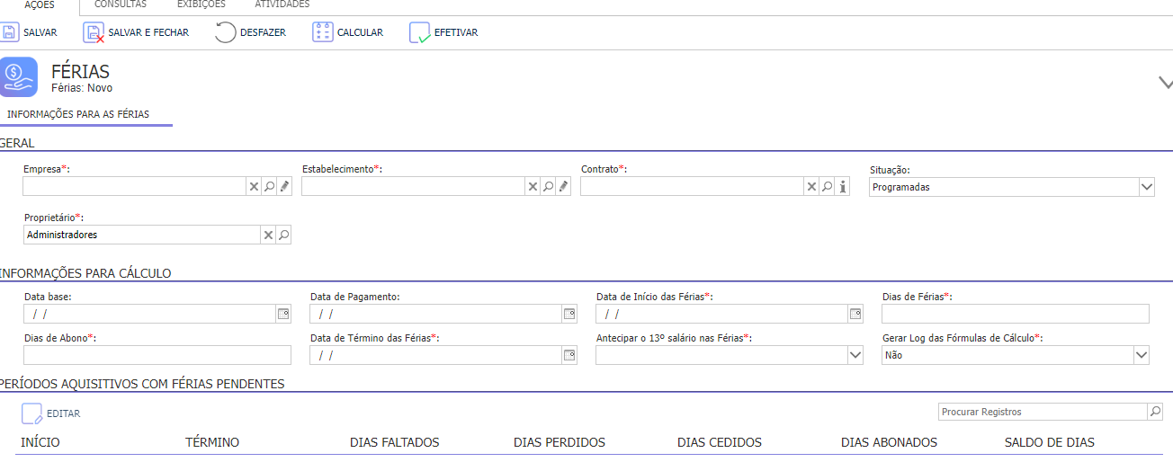- Preencha todos os campos das INFORMAÇÕES PARA AS FÉRIAS.