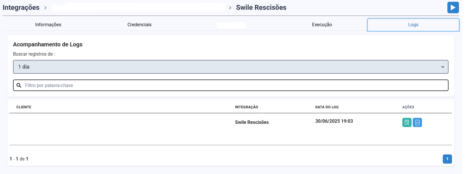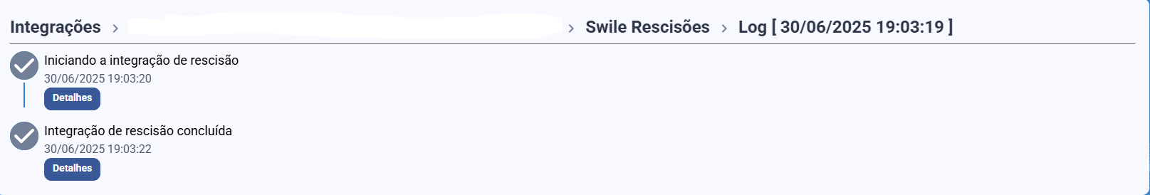 Ao clicar no botão das ações será exibido o detalhe dos logs da execução: