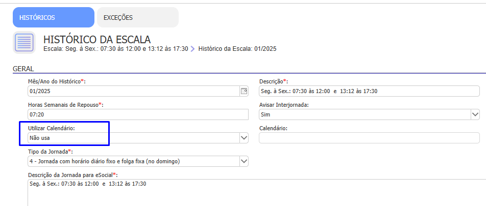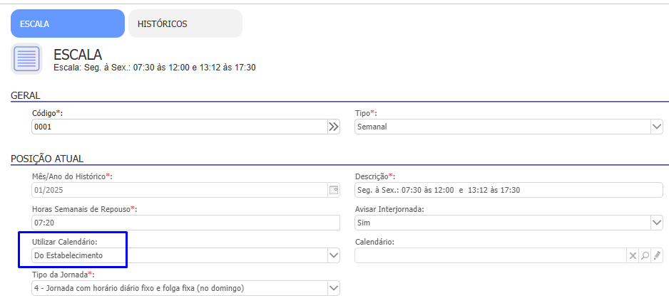 Para verificar como o calendário está sendo aplicado, identifique qual escala está atrelada ao contrato do colaborador. A partir dela, é possível determinar uma das três formas de utilização: