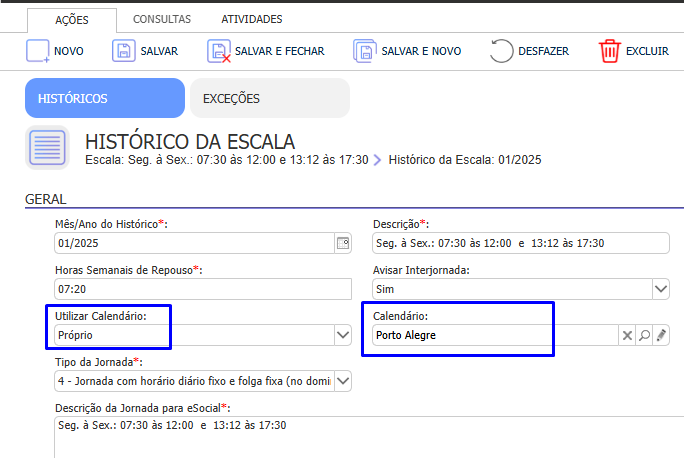 Nesse caso, o calendário pode ser um existente ou um novo, criado especialmente para essa escala.