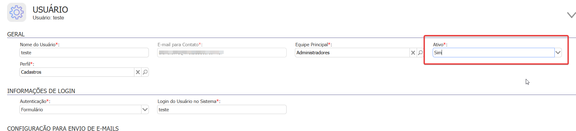 Para reativar o usuário e permitir o acesso ao sistema, siga o passo a passo: