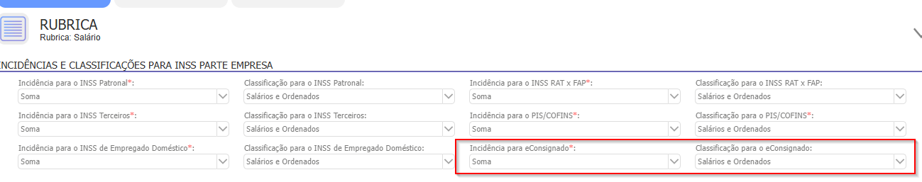 - Localize uma rubrica que conste na folha de rescisão e verifique o campo de Incidência para eConsignado";