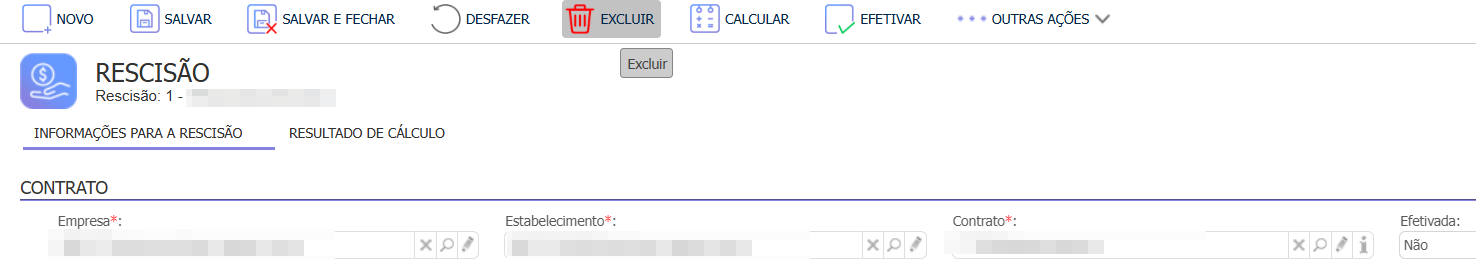 Situação: Ao excluir rescisão efetivada, processo é finalizado com erro: