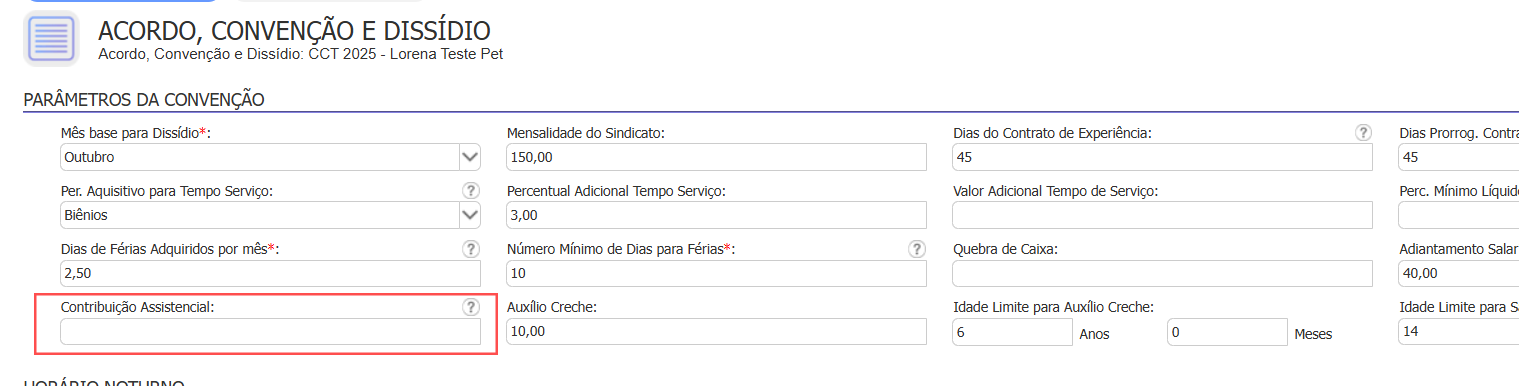 No campo "Contribuição Assistencial", informe o percentual do desconto.