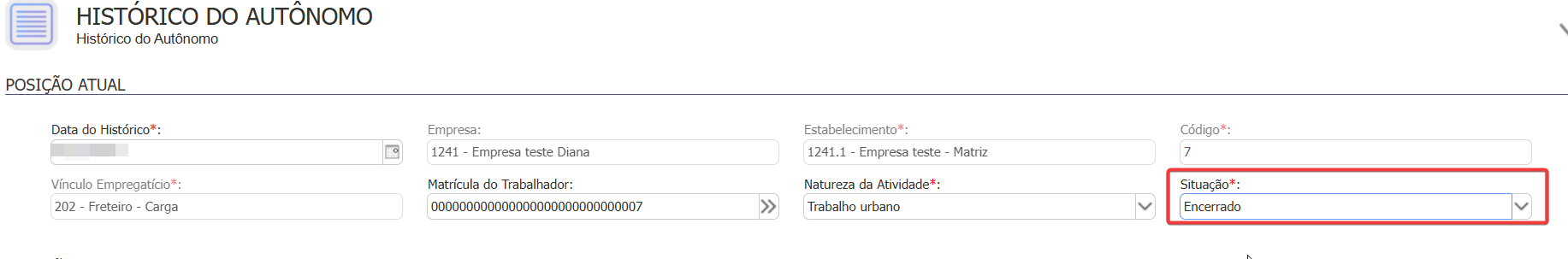 - Localize o autônomo desejado e na aba históricos, crie um novo histórico;