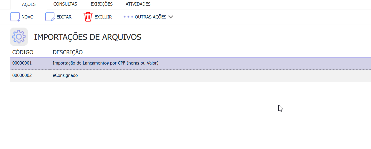 - Selecione e dê duplo clique sobre o IMPORTADOR DE ARQUIVO utilizado.