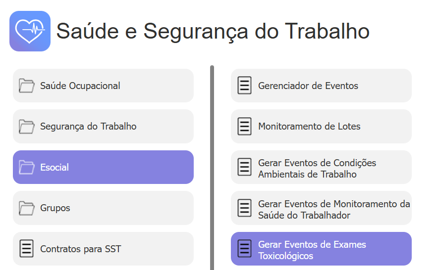 O exame toxicológico é uma exigência legal para determinadas categorias profissionais e deve ser devidamente registrado no módulo SST – Saúde Ocupacional do sistema. A seguir, apresentamos o passo a passo completo para cadastro, lançamento de resultado e envio ao eSocial.