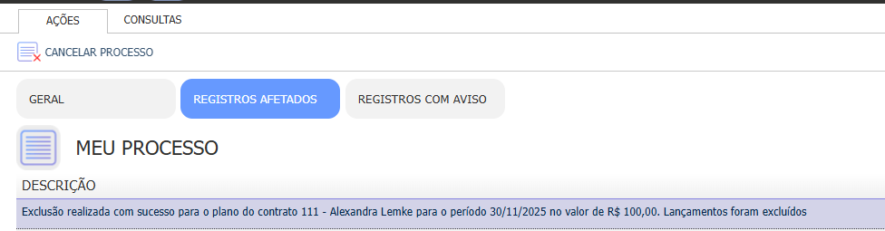 Na Opção = Contrato, significa que os contrato(s) selecionado(s) terão seus resultados excluídos, considerando o campo O que excluir.