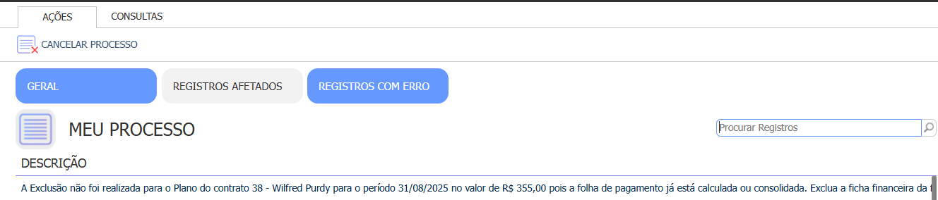 Retorna erro e NÃO EXCLUI o resultado, seja ele de plano ou de serviço.