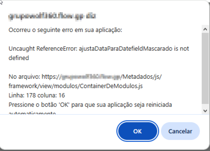 Ao realizar algum processo ou acessar o sistema aparece a mensagem abaixo: