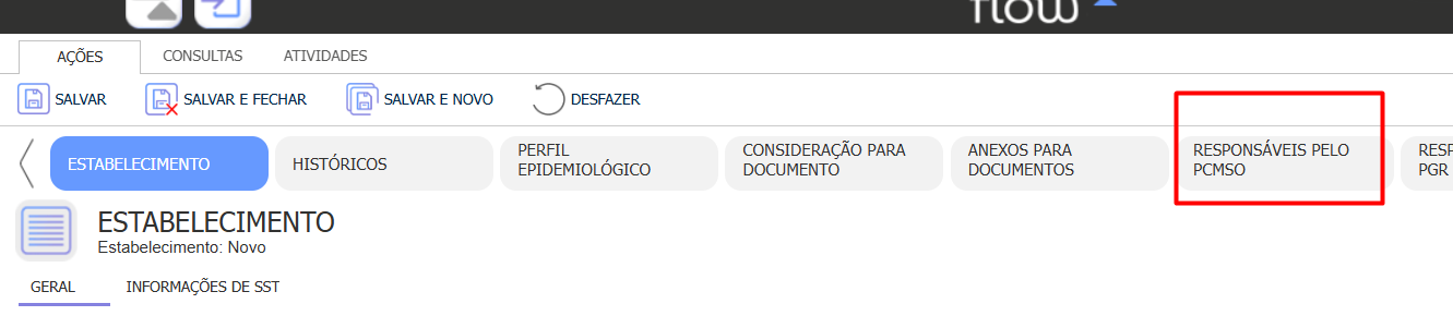 Empresariais > Estabelecimento.Verifique quem está cadastrado como responsável pelo PCMSO.