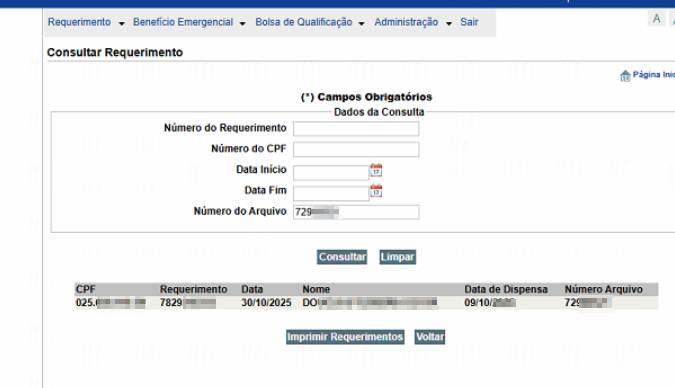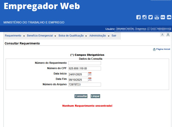 Seguro desemprego, mensagem "Nenhum requerimento encontrado"