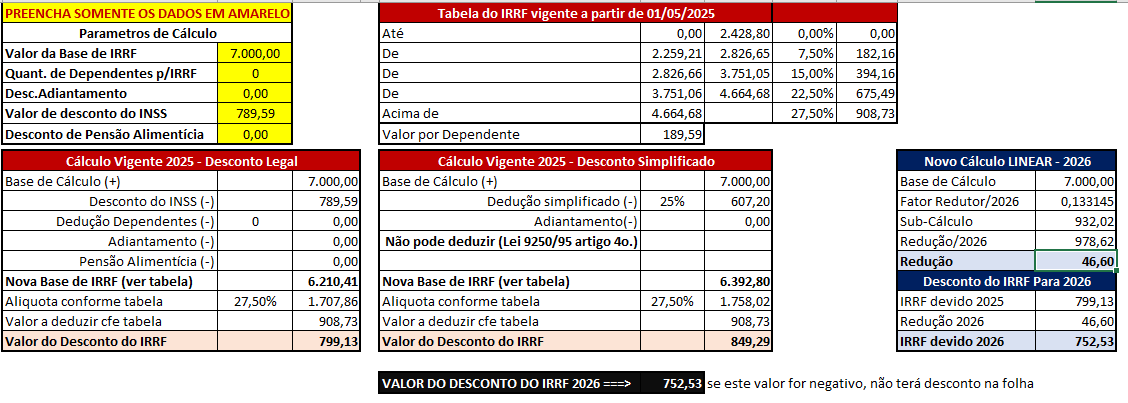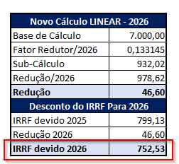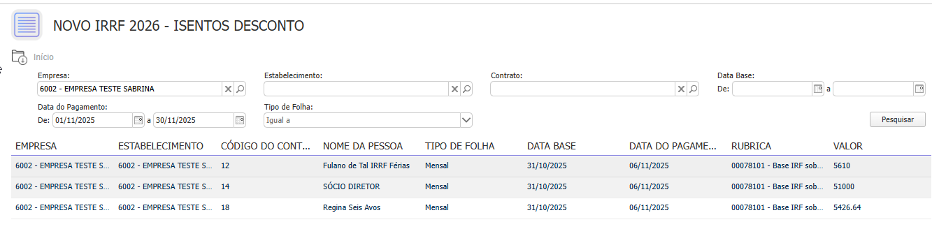 Essa orientação deve ser aplicada exclusivamente nas folhas que forem calculadas em dezembro, com pagamento a partir de 01/01/2026, onde o sistema ainda não estiver atualizado com a nova regra de cálculo de imposto de renda, e o cliente não pode aguardar a atualização para encaminhar o pagamento.