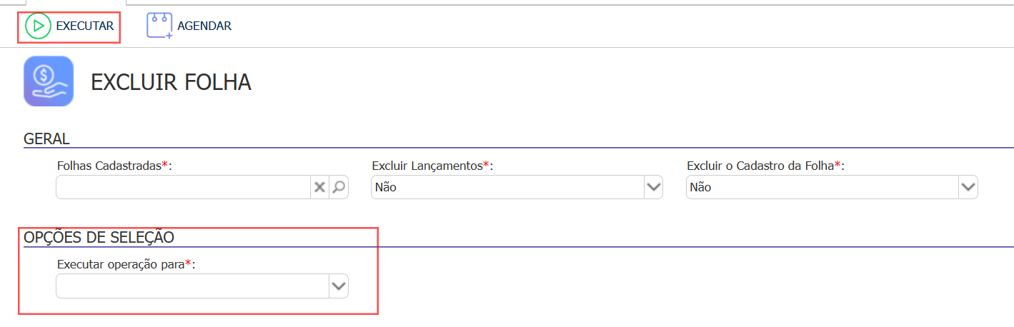 - Folhas > Excluir Folha;