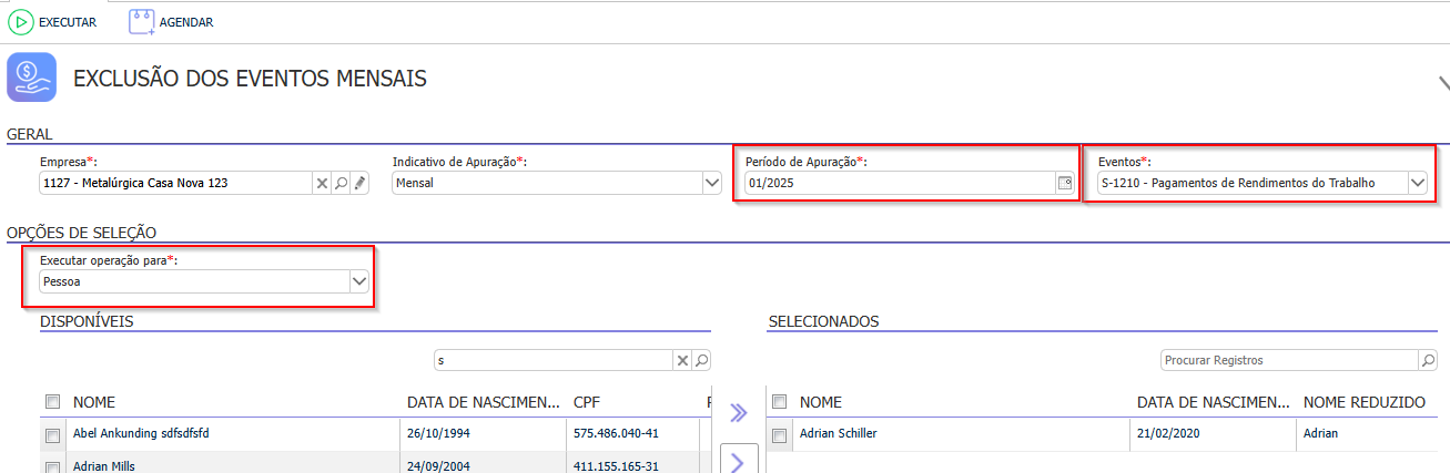 Exclua o evento S-1210 selecionando a pessoa necessária.