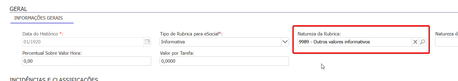 Este incidente ocorre, pois foi inserida informação de natureza eSocial em uma rubrica de tipo Base de Cálculo.