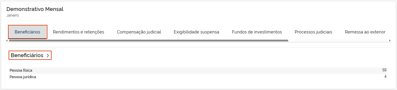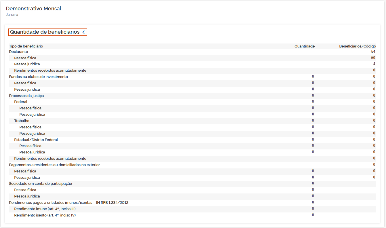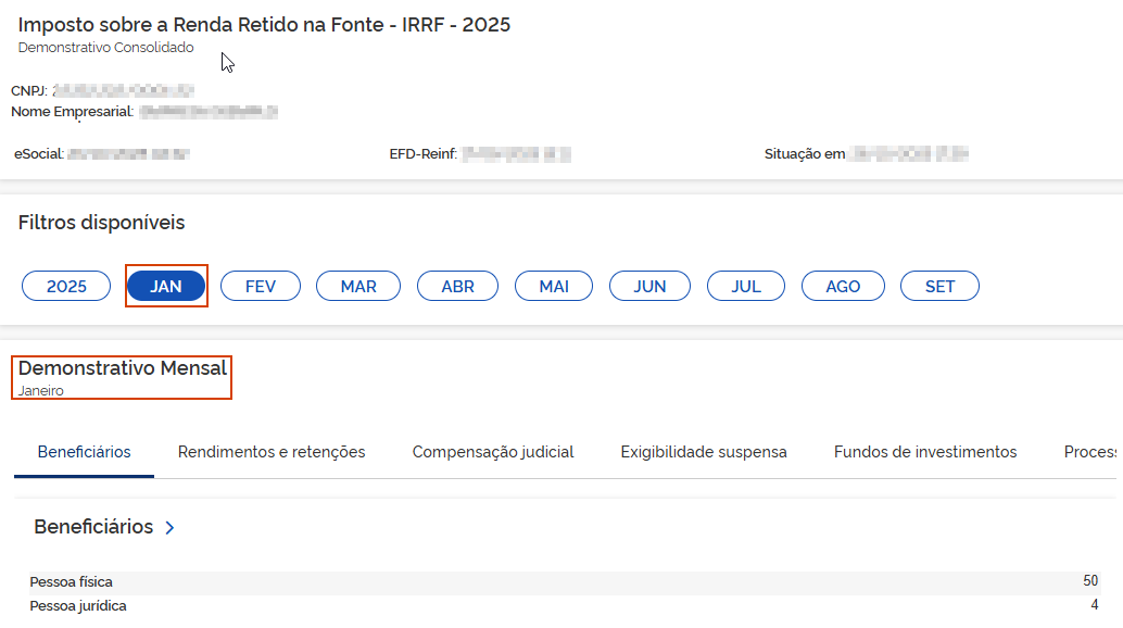 5.1 Beneficiários: Os valores demonstrados são totalizados pelos informativos eSocial e EFD-Reinf. Em Beneficiários.