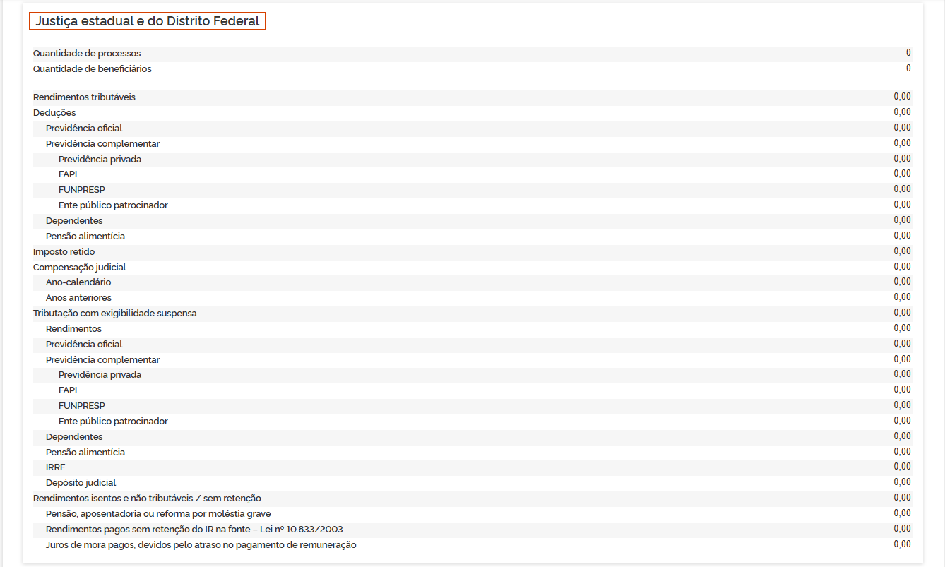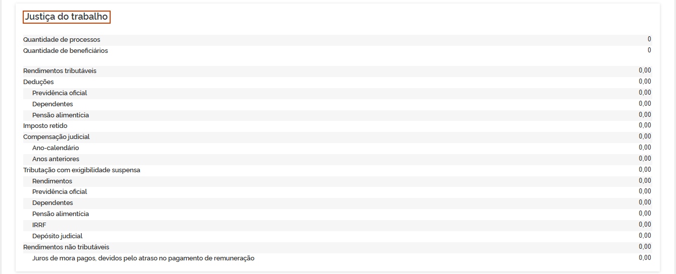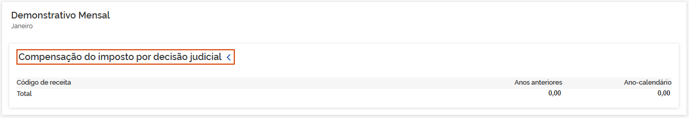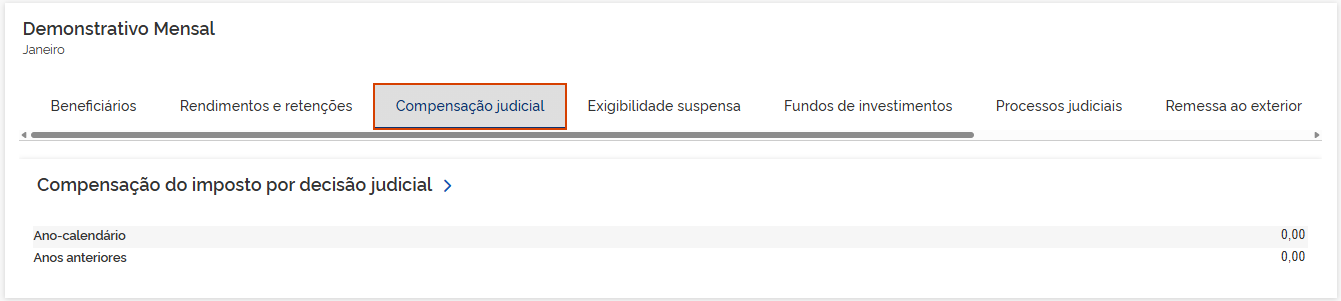 5.3 Compensação judicial: Os valores demonstrados são consolidados pelos informativos eSocial e EFD-Reinf. Em Compensação do imposto por decisão judicial, clique na seta >.