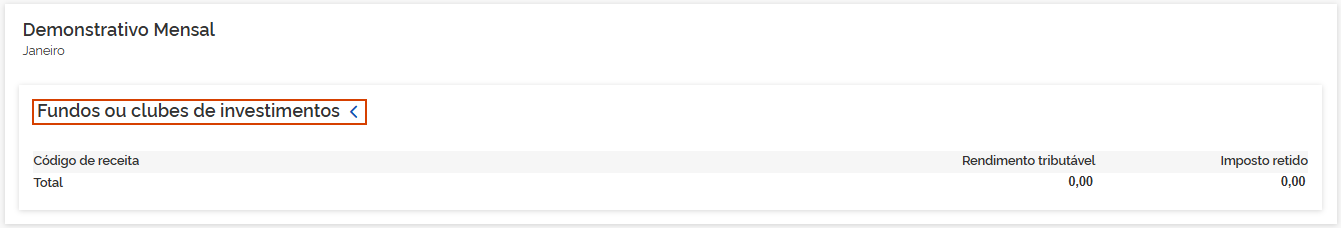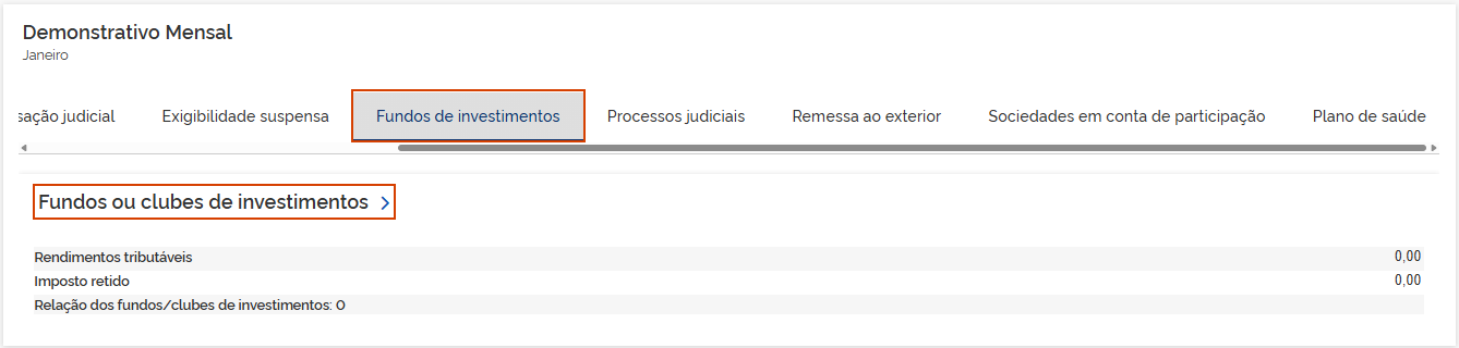 5.5 Fundos de investimentos: Os valores demonstrados são consolidados pelos informativos eSocial e EFD-Reinf. Em Fundos ou clubes de investimentos, clique na seta >.