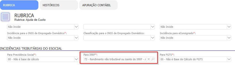 1 - Qual incidência correta para rubrica de Ajuda de Custo?