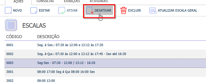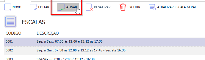 Caso precise ativar novamente a escala: - Selecione a escala desejada (já inativa).