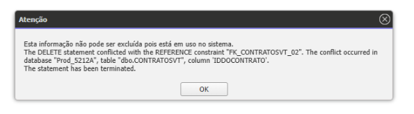 Esta informação não pode ser excluída pois está em uso no sistema.