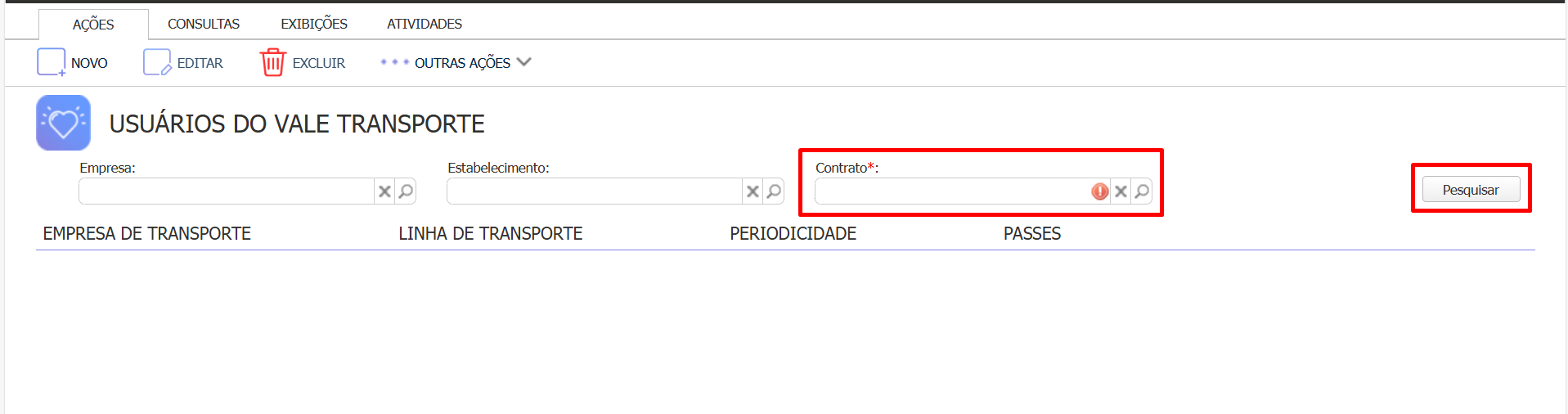 - No módulo de Benefícios, acesse o menu: Principais > Transporte > Usuários do Vale Transporte.