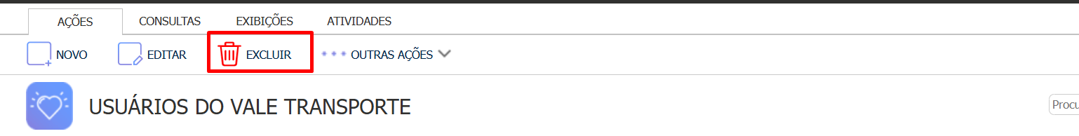 Clique sobre o o cadastro do usuário do Vale Transporte e clique em EXCLUIR.