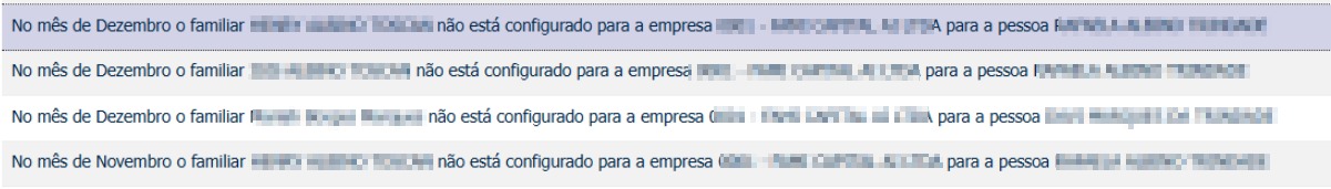 No mês xxx o familiar xxxx não está configurado para a empresa xxx para a pessoa xxxx