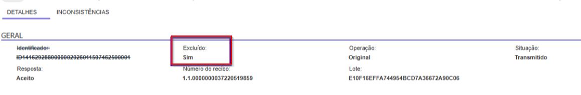 O evento S-3000 passará a ficar aceito com o número do recibo informado. A mensagem de inconsistência permanecerá aparecendo.