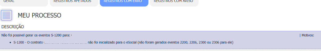 Ao gerar o evento S-1200, o processo é finalizado com a seguinte mensagem de erro: