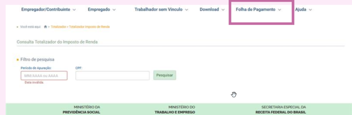 Clique em Folha de Pagamento > Totalizadores > IRRF por trabalhador: