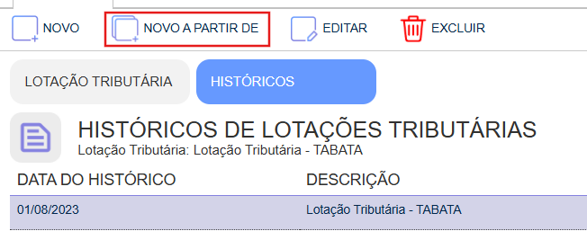 Na guia Histórico clique em NOVO A PARTIR DE.