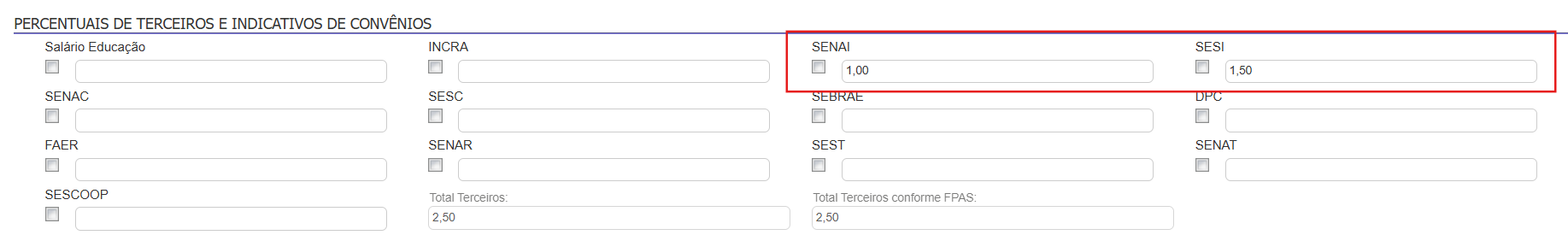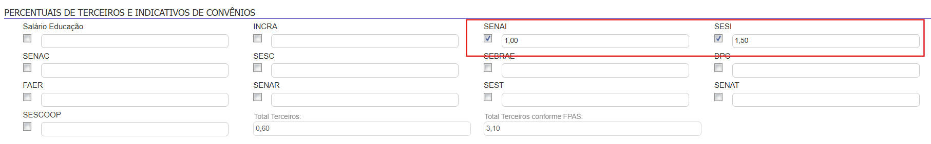 Desmarque os campos que estavam flegados e confira os percentuais de recolhimento.