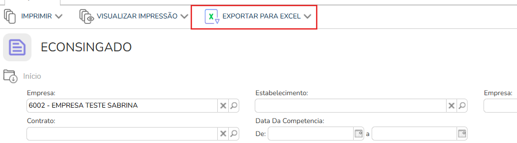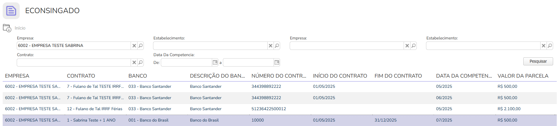 O sistema possui uma consulta com a fonte eConsigando que permite a emissão para validações e conferências dos empréstimos econsignado importados.