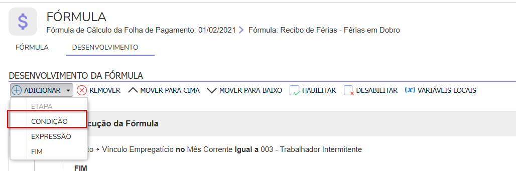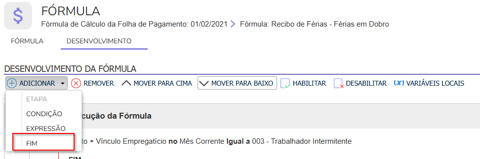 - Acesse o módulo de Folha de Pagamento no menu Folhas > Tabelas para Cálculo > Fórmulas de Cálculo.