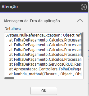 Ao calcular rescisões está aparecendo Mensagem de Erro de Aplicação: