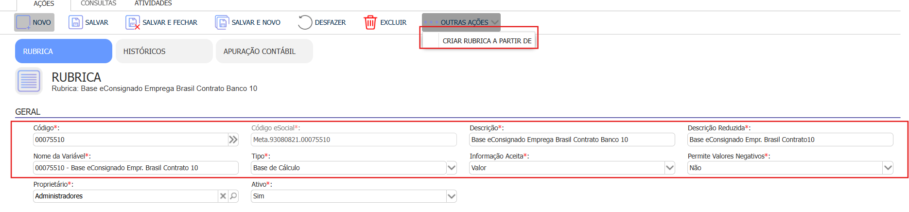 Cadastrar as rubricas de bases de eConsigando do código 75510 a 75530.