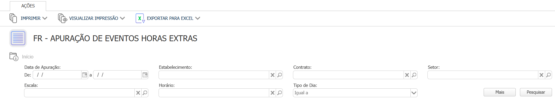 3. Pesquise por Apuração de Eventos - Horas extras: